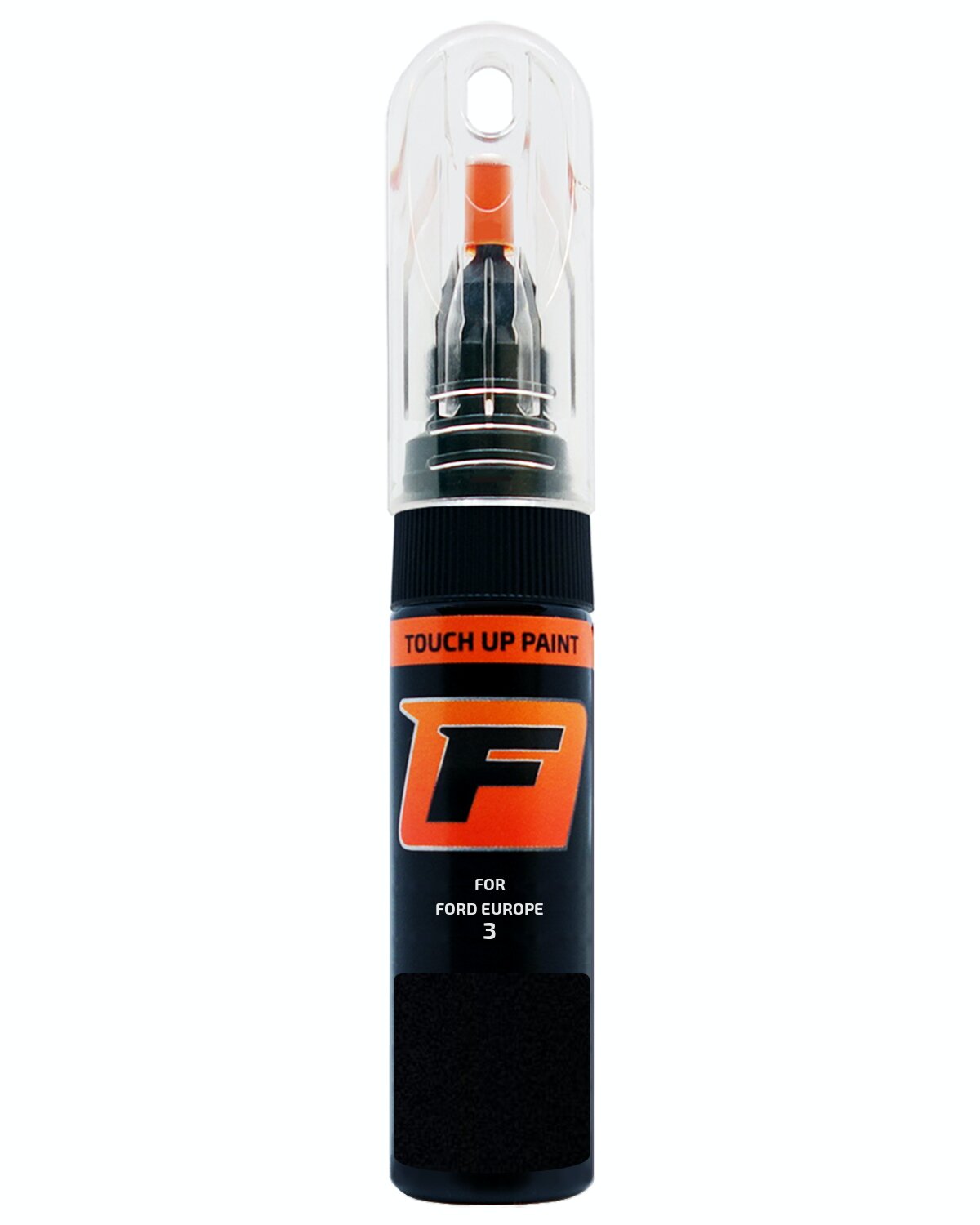 Krāsas zīmulis ir uzpildīts ar oriģinālo FORD EUROPE TRANSIT CONNECT 3, 5G9Z, 7343, A, G1, G9ZE, G9ZEWHA, J, R ABSOLUTE(SHADOW)BLACK vācu ražotāja krāsu, kas atbilst rūpnīcā izmantotajam tonim.